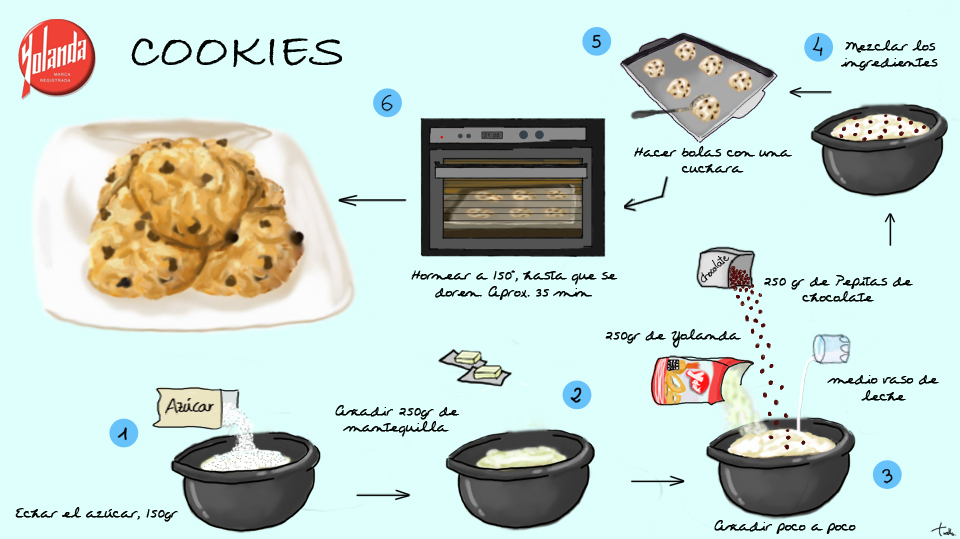 Dulce que te quiero dulce, como estás cookies: Yolanda, mantequilla, azúcar, leche, pasas o chocolate, mezcla mezcla, bate bate, hornea hornea ¡y la merienda de los días de piscina lista! Y ya que nos ponemos ¿unas cupcackes?