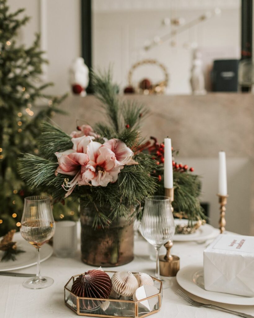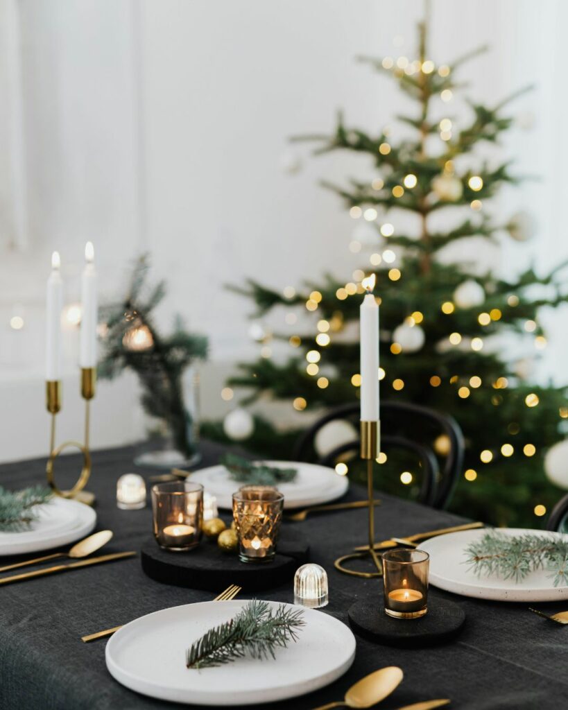 Independientemente del estilo que elijas, existen algunos trucos que funcionan siempre. Mantén una paleta de colores coherente, mezcla materiales naturales como la madera o el lino con detalles más elaborados, y utiliza una iluminación cálida que cree ambiente. Los elementos personalizados para cada comensal, como una pequeña galleta navideña hecha con Harina Yolanda o una ramita de romero sobre la servilleta, marcan la diferencia sin esfuerzo.