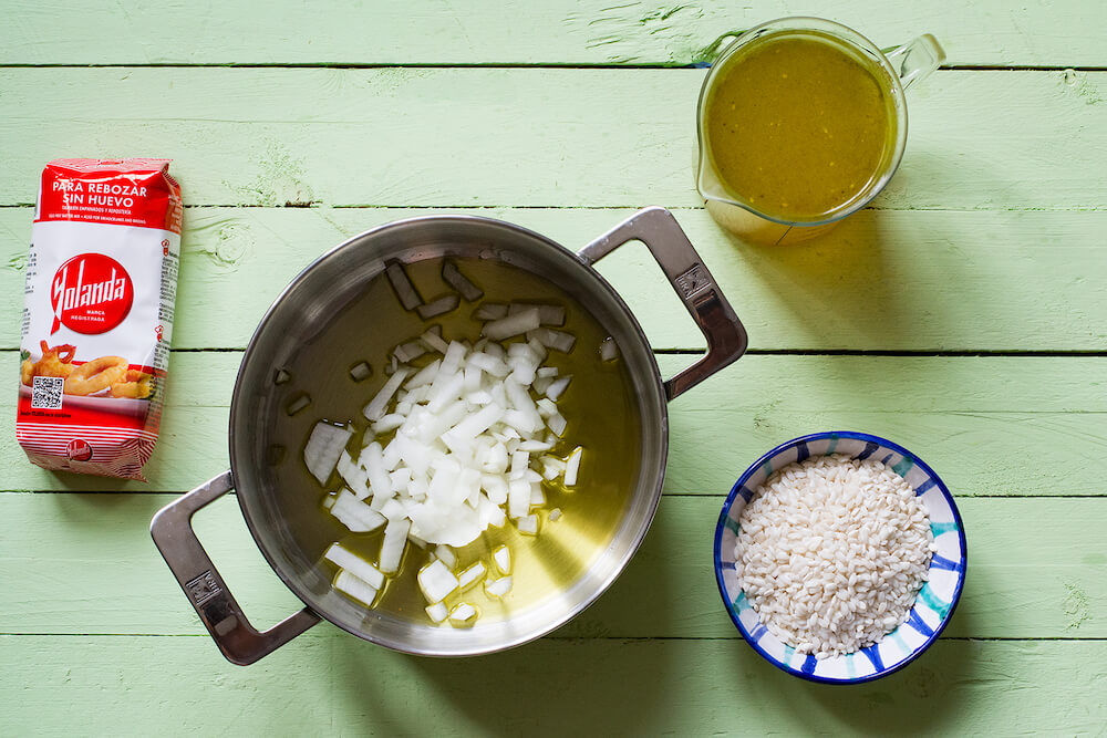 - 3. Añadimos entonces el arroz y mezclamos bien.