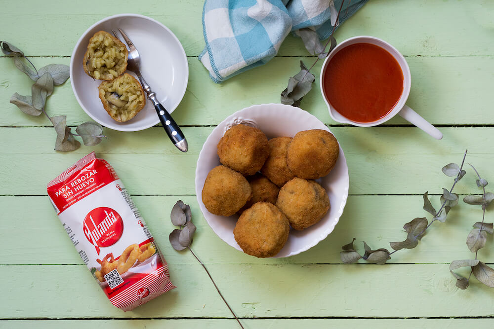 - 8. Las pasamos por un poco de Harina Yolanda, y después una mezcla a partes iguales de Harina Yolanda y agua y por último por pan rallado.