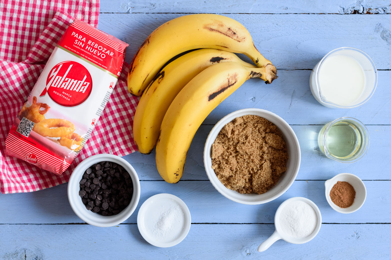 - Añadimos el azúcar, el aceite y la leche y mezclamos bien.