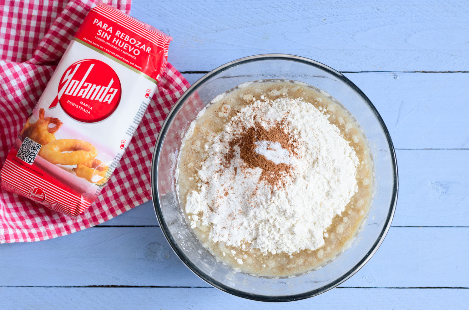 A continuación añadimos la Harinas Yolanda, la levadura, la canela y la pizca de sal.