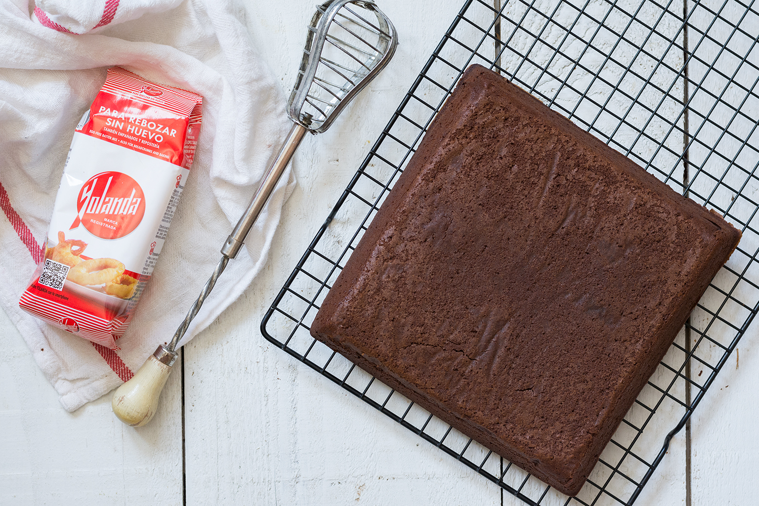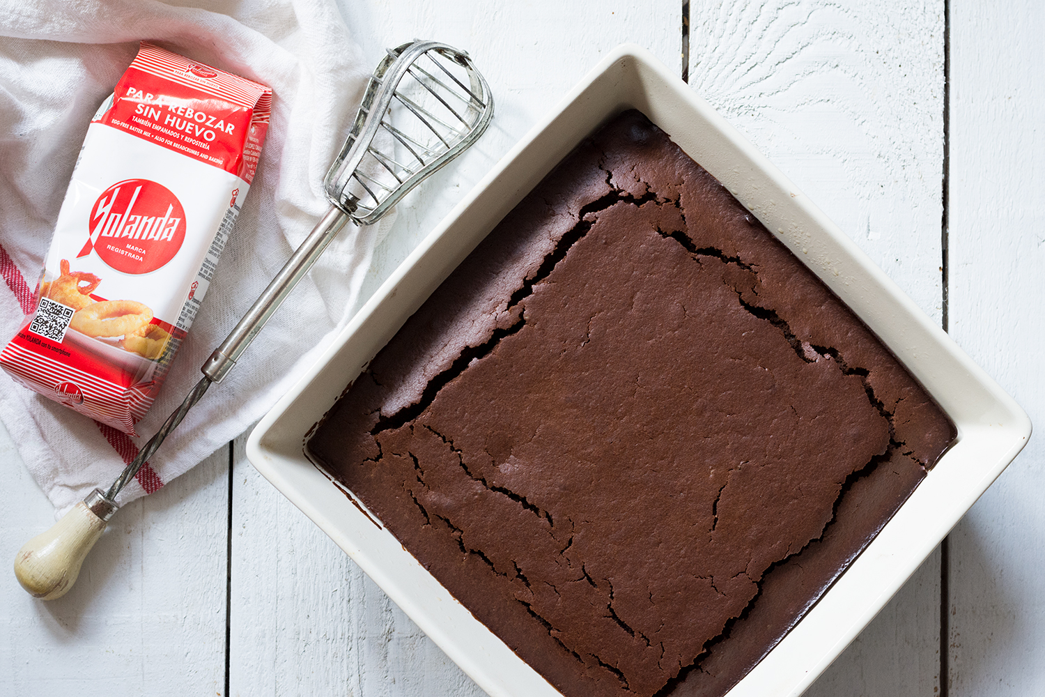 - Una vez que esté completamente integrada, la pasamos a un molde cuadrado o rectangular de horno y horneamos 20 minutos a 180ºC.