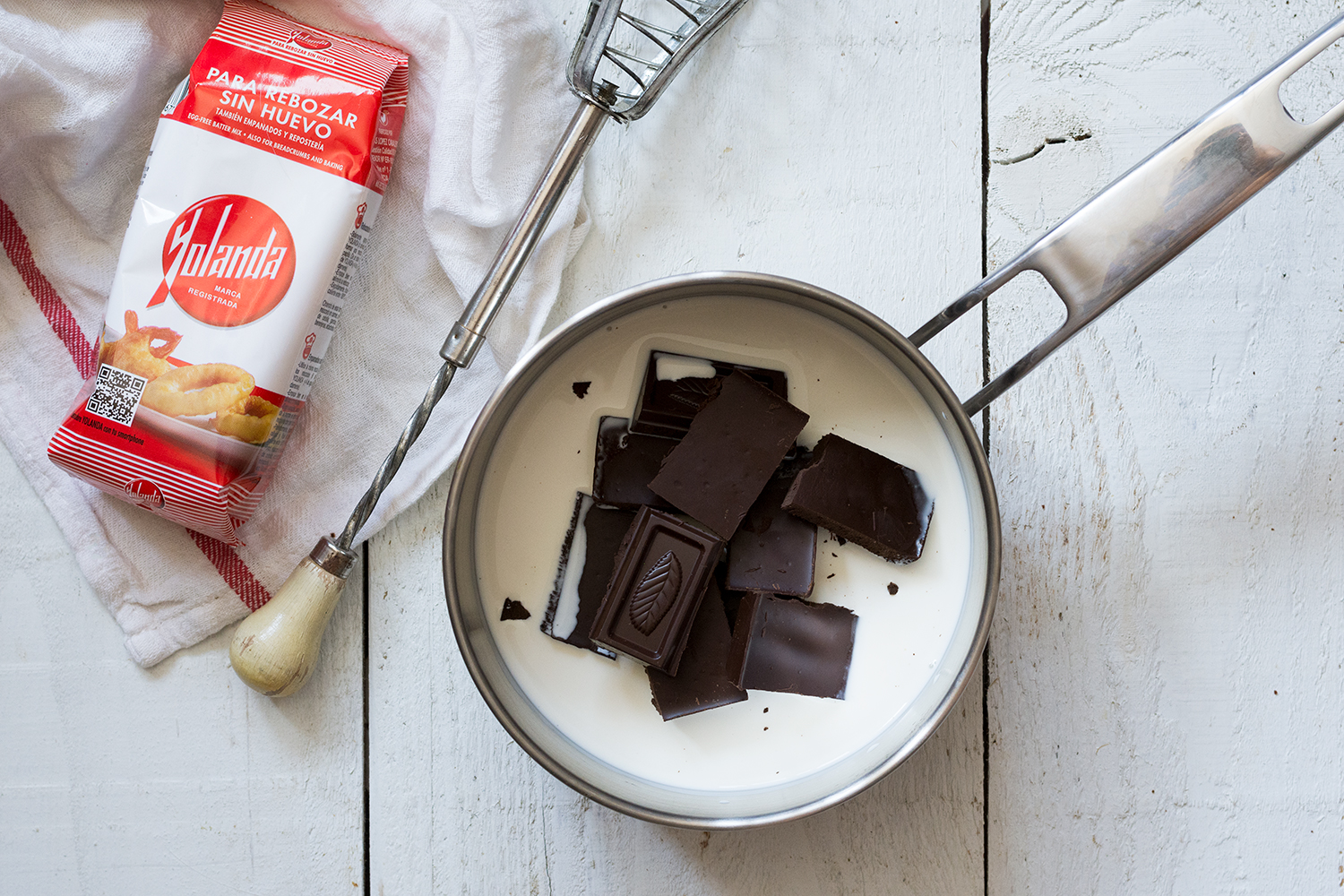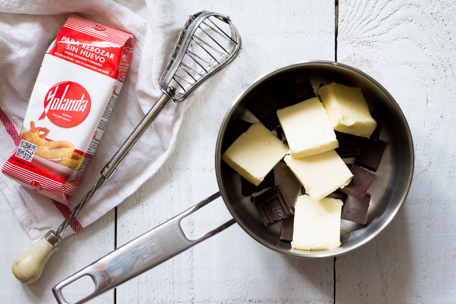 - Ponemos un cazo a fuego mínimo y fundimos el chocolate con la mantequilla.