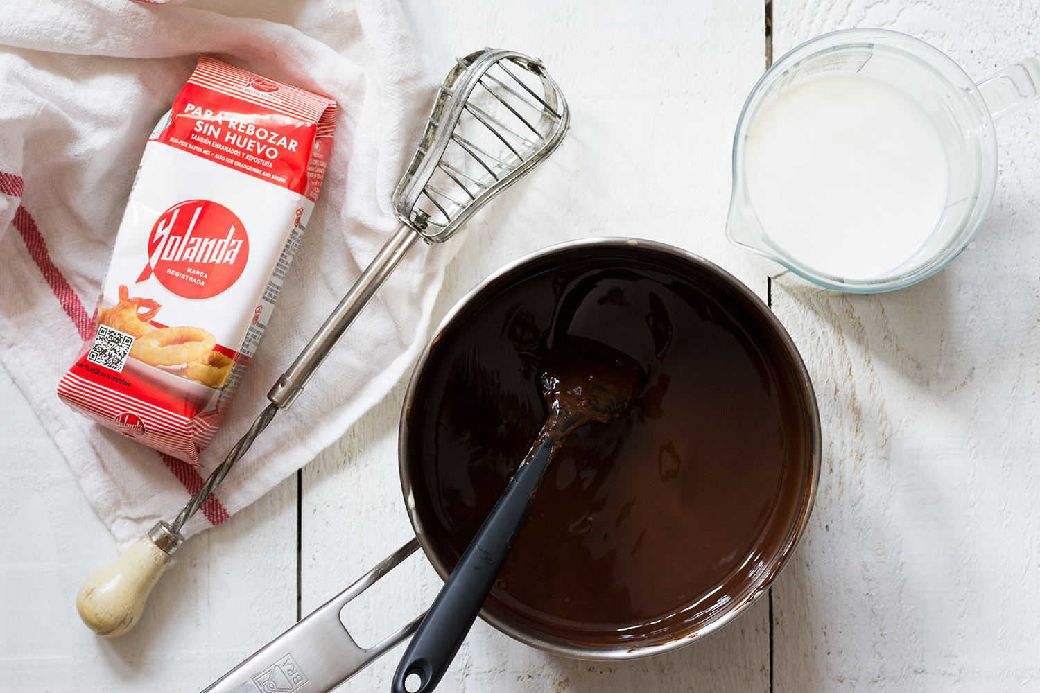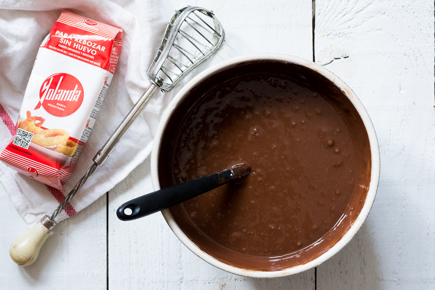 - Añadimos poco a poco la mezcla de chocolate y vamos integrando.