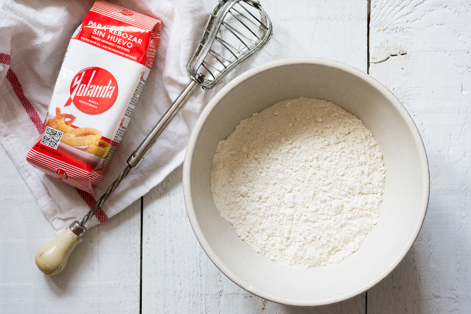 - En un cuenco grande tamizamos la Harina Yolanda con la levadura química.