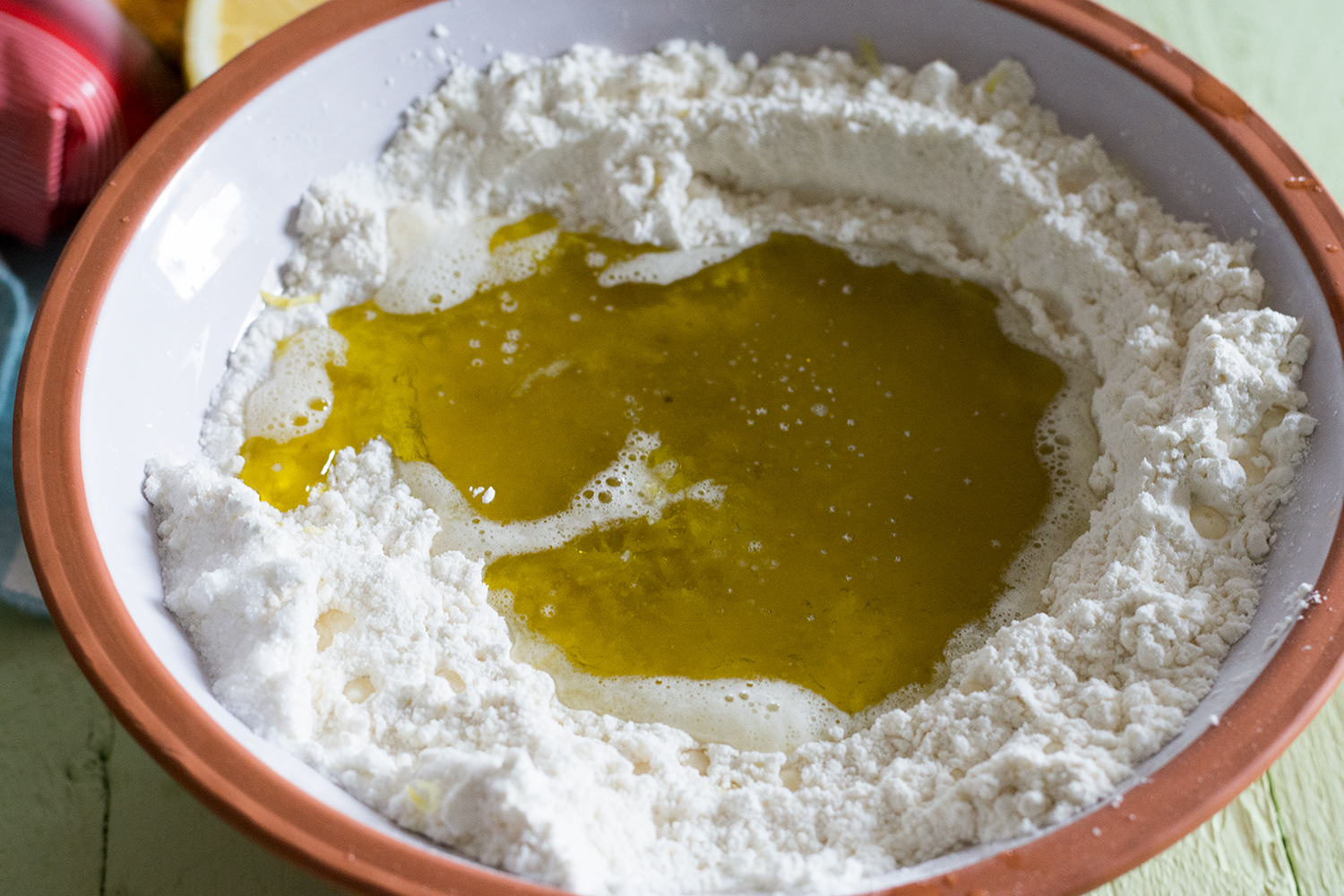 - A continuación, añadimos el agua, el aceite y batimos con cuidado hasta integrar todos los ingredientes.