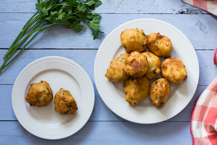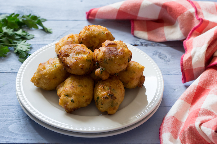 - 4. Ponemos a calentar el aceite vegetal y vamos tomando porciones de la masa con un par de cucharas y añadiendo al aceite. Freímos hasta que comience a dorarse.