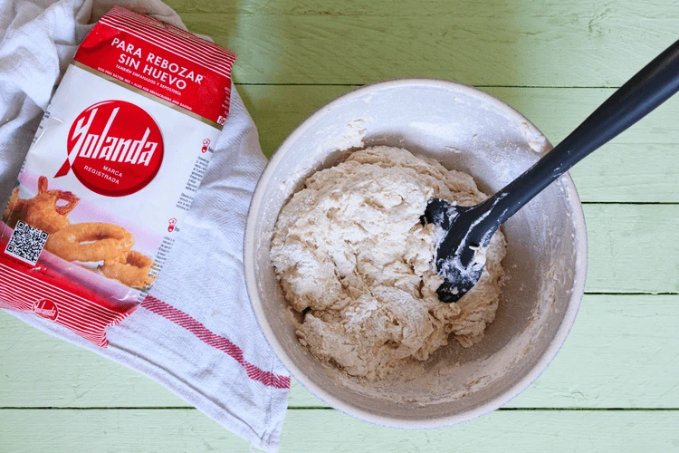 - En un cuenco mezclamos los ingredientes secos (harina, levadura y sal).