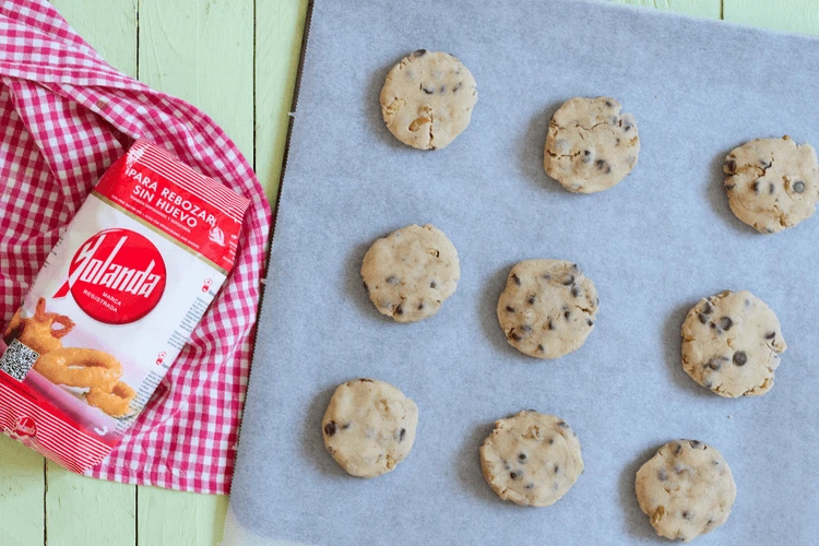 Vamos tomando pequeñas porciones de la masa y dando forma de galleta. Las colocamos en una bandeja de horno sobre papel vegetal y horneamos unos 15 minutos o hasta que veamos que comienzan a dorarse.