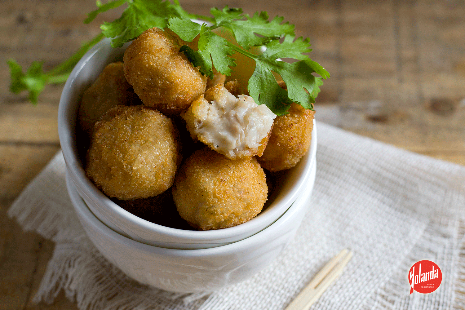 - Mezclamos dos cucharadas de leche con 1 cucharada de harina Yolanda. Vamos formando bolas con la masa, las pasamos por la mezcla de harina y leche y posteriormente por pan rallado. Freímos en abundante aceite caliente hasta que comiencen a dorarse. Servimos.