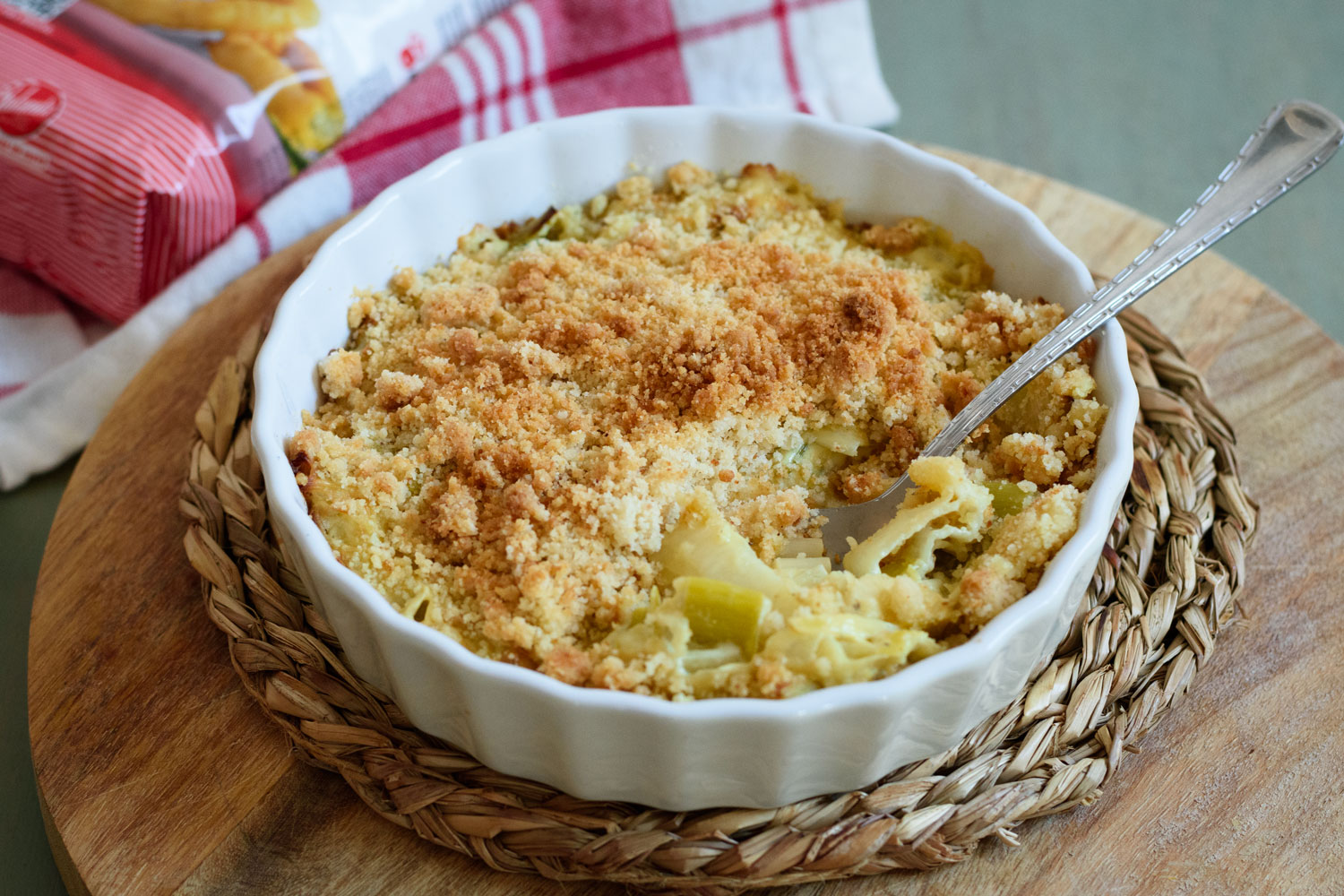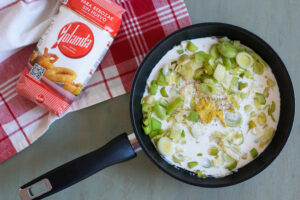¿Has probado alguna vez un crumble salado? Hoy preparamos este con puerros, super cremoso con harina Yolanda y sin huevo. ¡Queda espectacular!