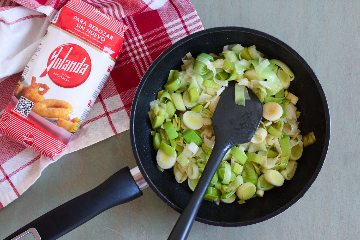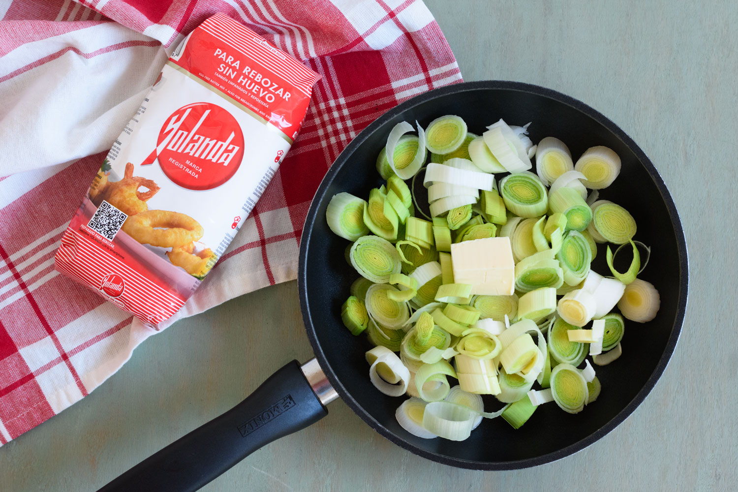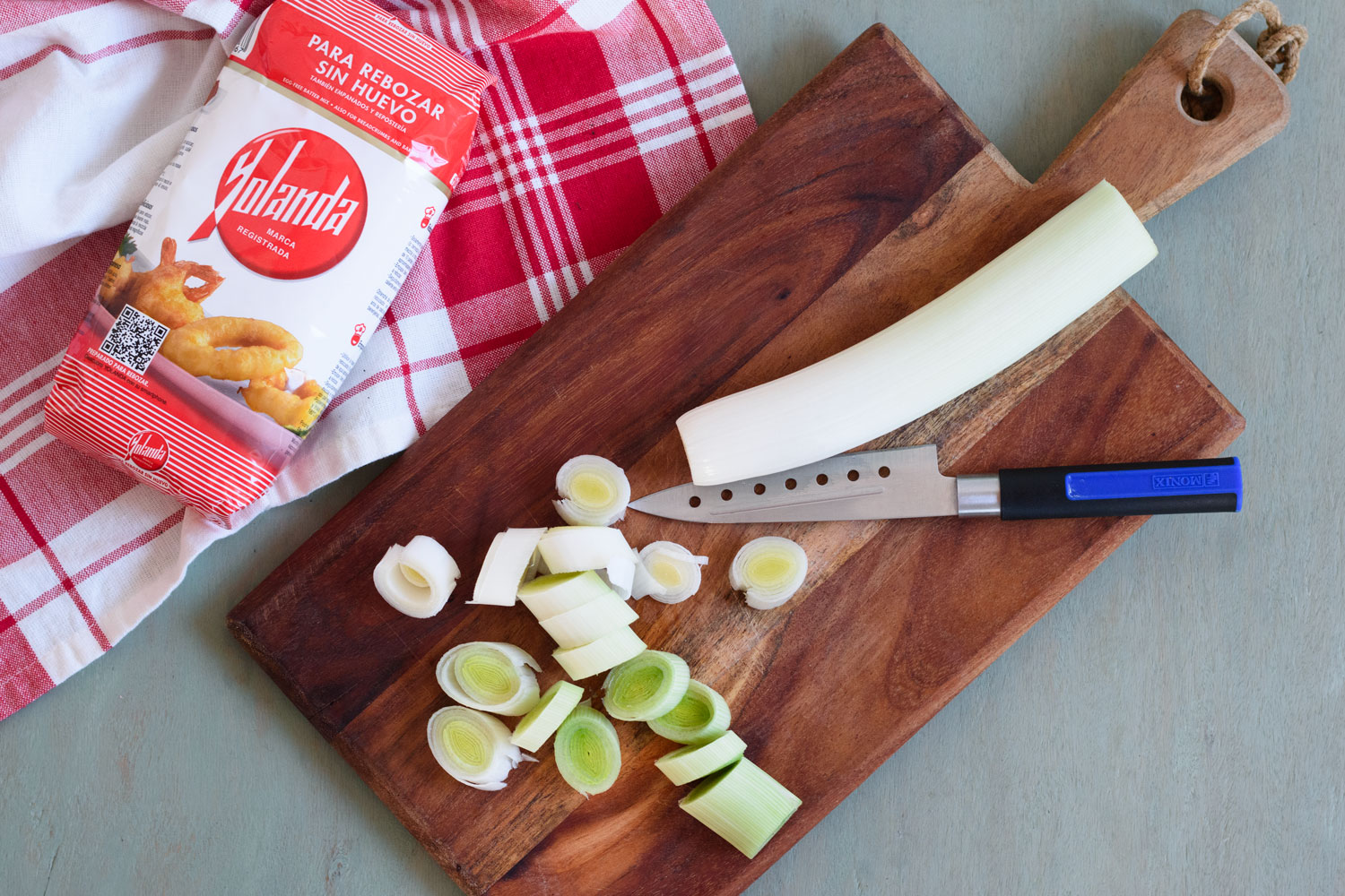 - Lavamos y cortamos los puerros en aros finos.