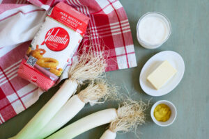 - Pasamos los puerros a una fuente de horno y cubrimos con la mezcla de Yolanda con mantequilla.