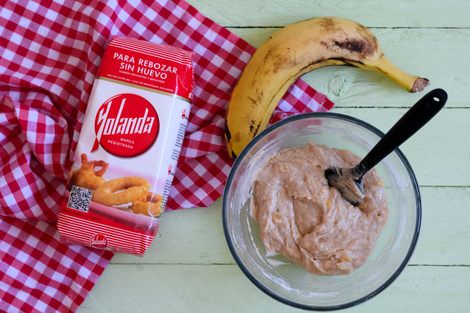 - En un cuenco y con ayuda de un tenedor machacamos el plátano hasta conseguir un puré.