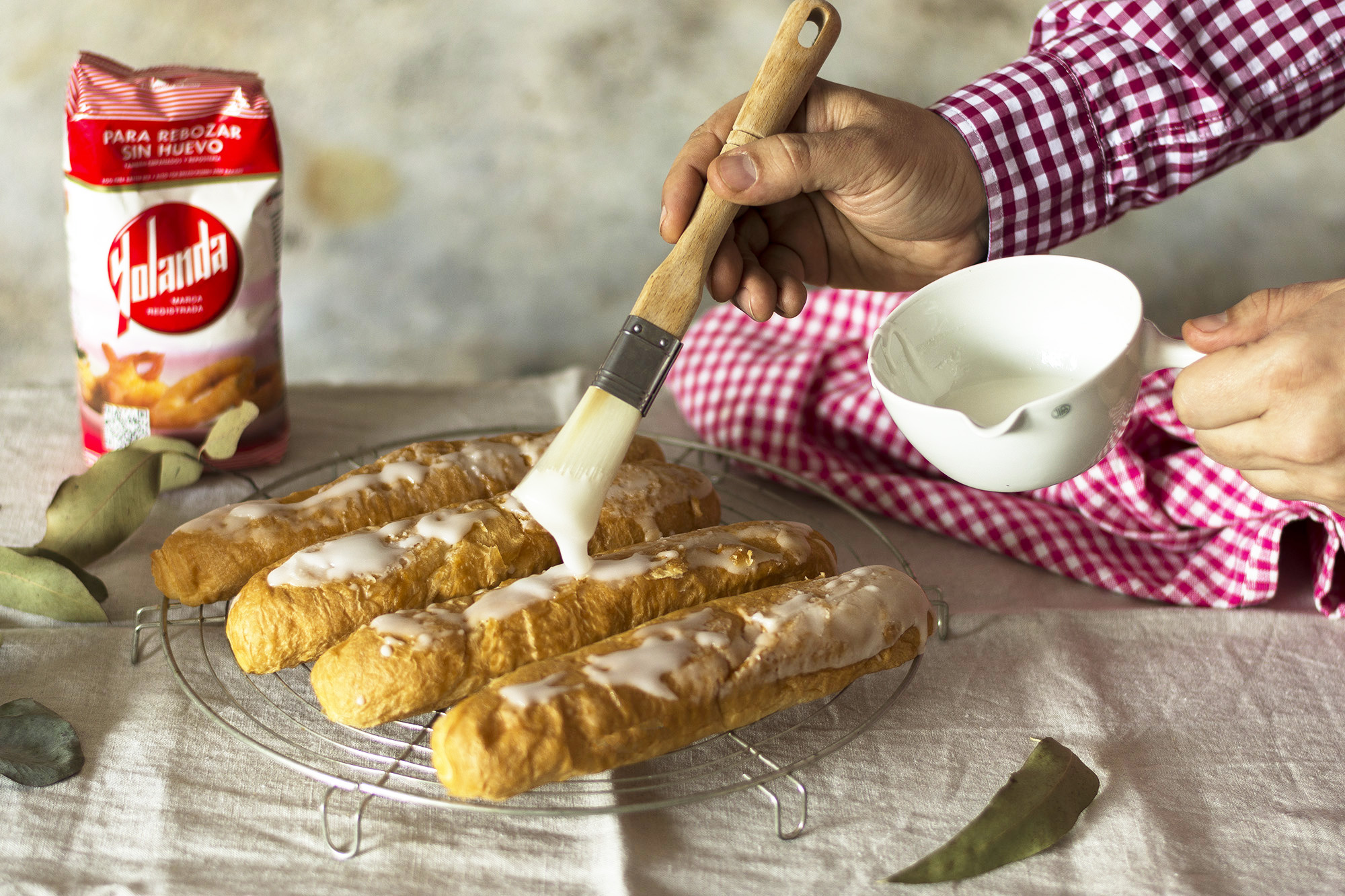 - 7. En un cuenco, mezclamos el azúcar glas con el agua hasta que obtengamos una mezcla homogénea. Con ayuda de un pincel de cocina, pincelamos los fartons y dejamos unos minutos para que seque el glaseado.