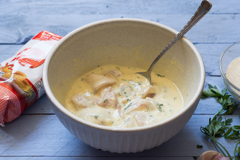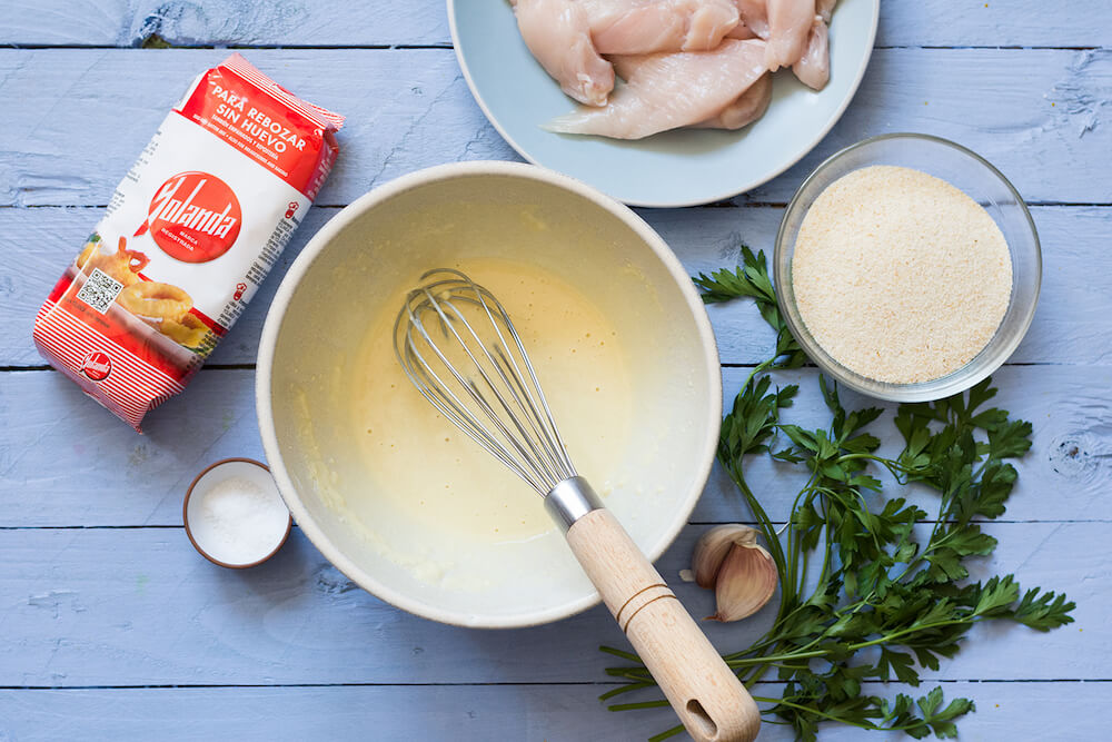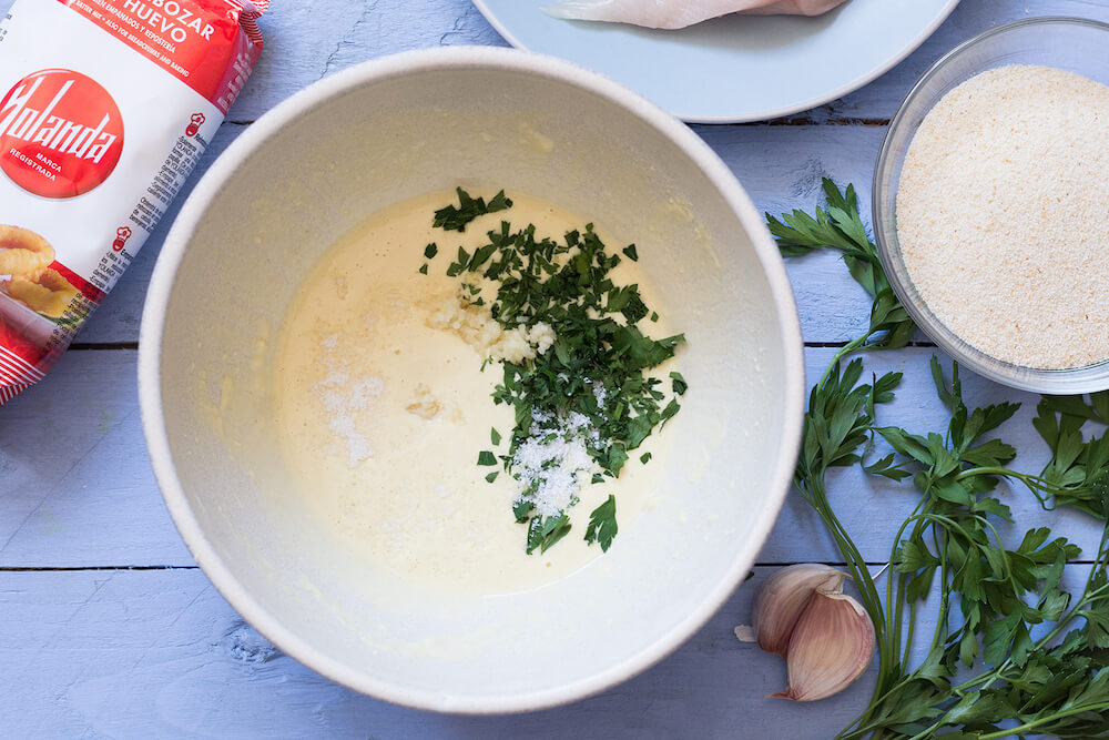 - 1. En un cuenco grande, mezclamos la Harina Yolanda con el agua hasta obtener una mezcla sin grumos. Añadimos los dientes de ajo machacados, el perejil picado y sal al gusto. Mezclamos bien.
