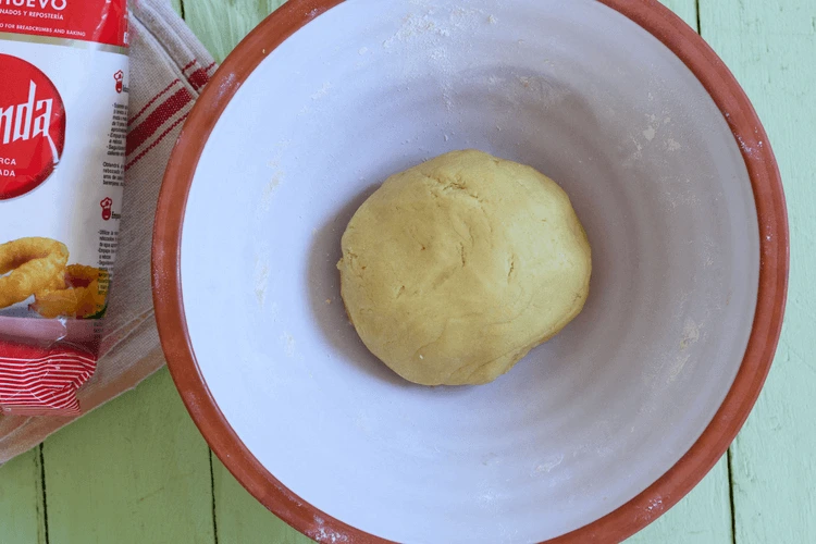 Mezclamos y amasamos hasta obtener una masa elástica y homogénea.