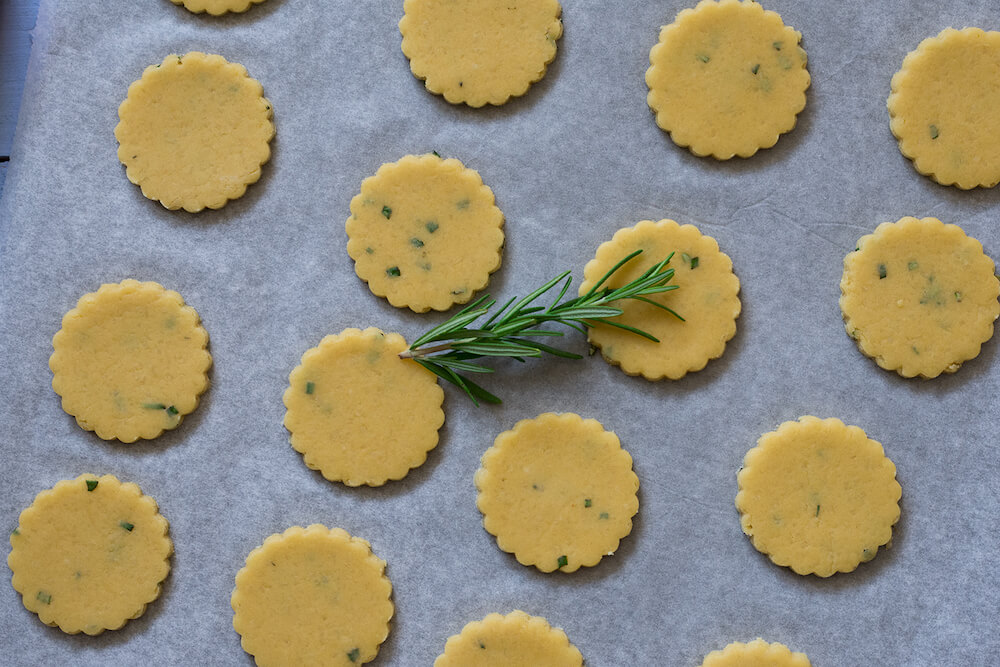 - 5. Con un cortador de galletas vamos cortando la masa y depositando las galletas en una bandeja de horno cubierta con papel de hornear.