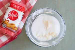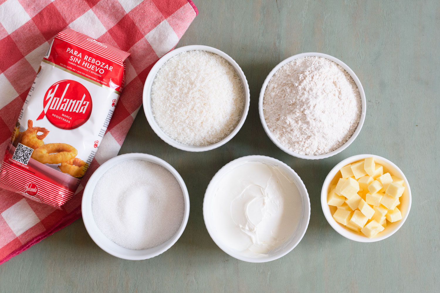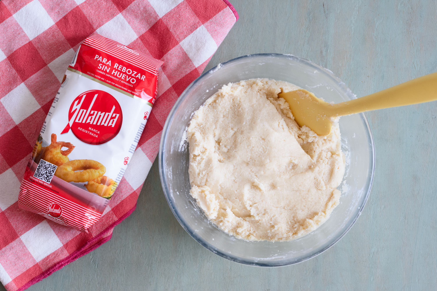 Añadimos la Harina Yolanda, el coco rallado y mezclamos con ayuda de una espátula hasta obtener una masa homogénea y densa.