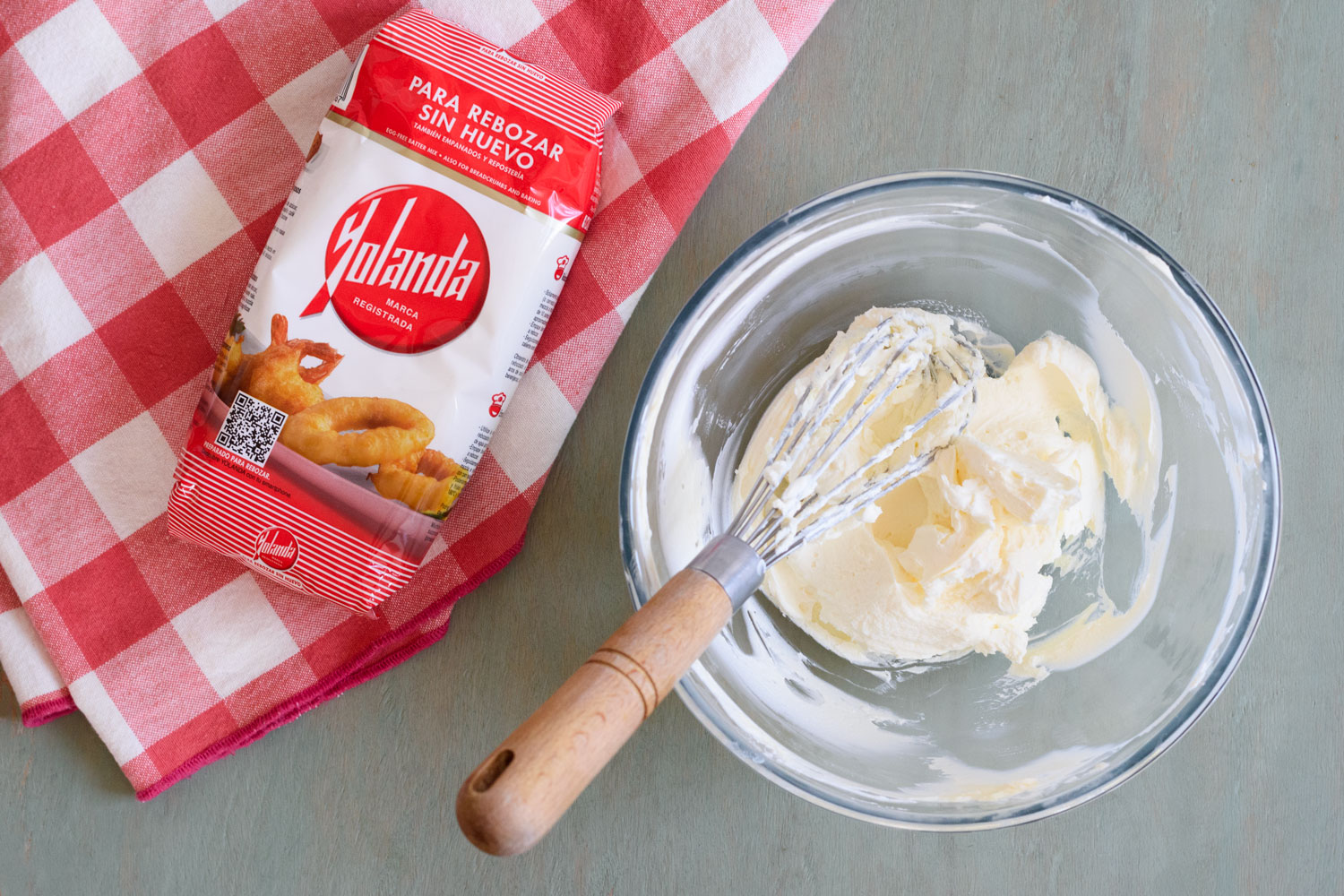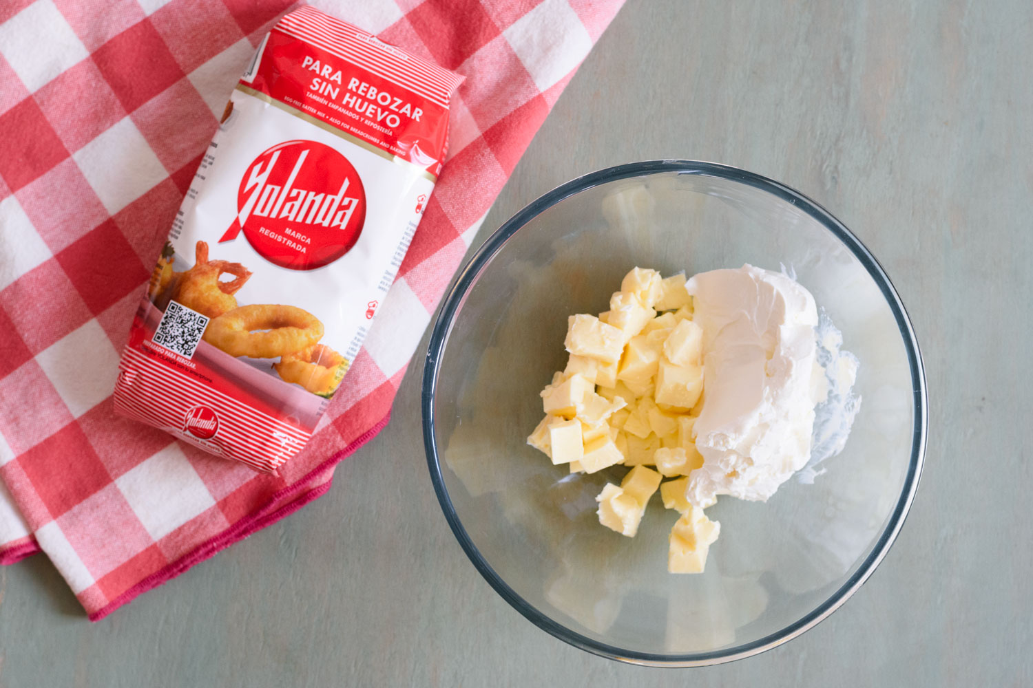 En un cuenco grande batimos la mantequilla con el queso crema hasta que quede completamente integrado.