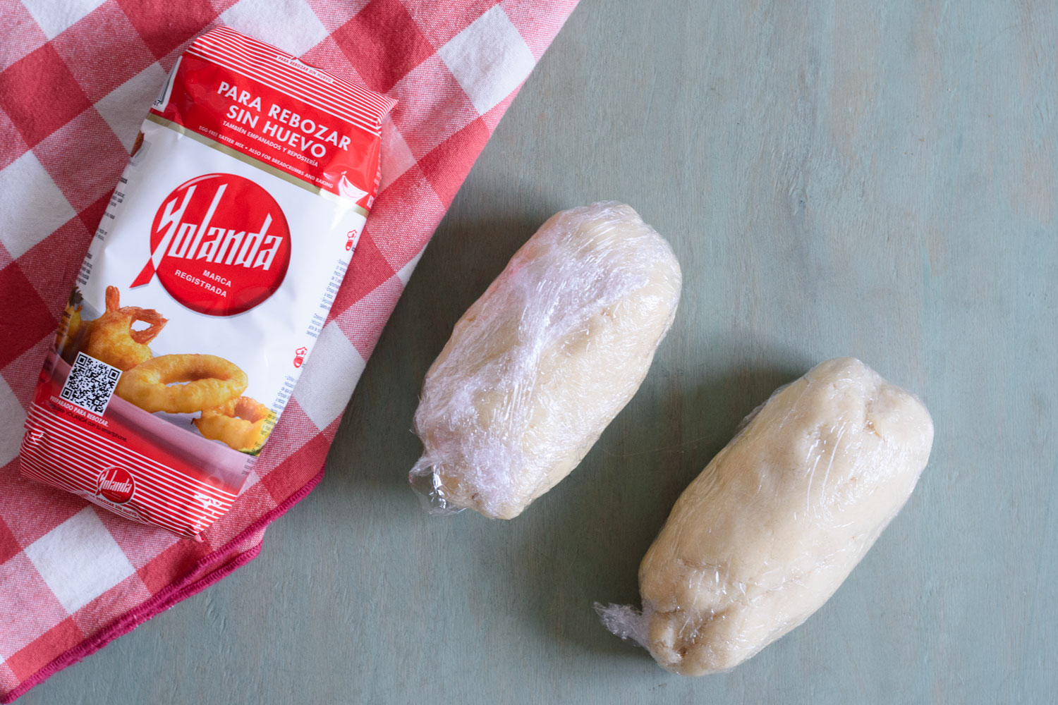 La dividimos en dos, la cubrimos con papel film y llevamos a la nevera unos 30 minutos.