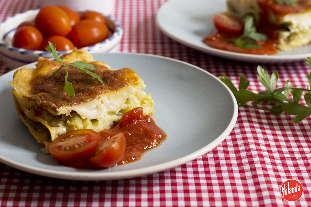 ¡Un aperitivo muy rico! Lasaña de verduras creada con pasta fresca sin huevo y con harina Yolanda, puedes modificar el relleno con las verduras que más prefieres.