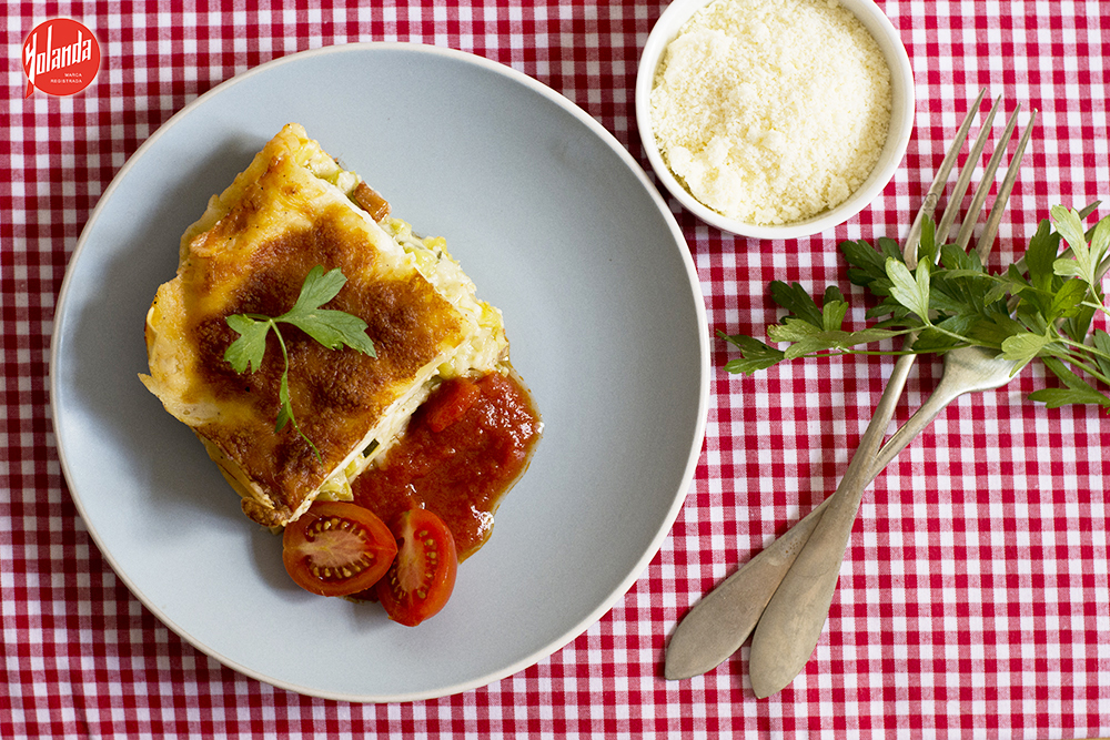 - En un post anterior os enseñamos cómo preparar pasta fresca casera con Harina Yolanda y que quedara perfecta. Así que una vez que tengamos la pasta estirada, la cortaremos según el tamaño de la bandeja en la que prepararemos la lasaña. El tamaño habitual suele ser de 10 x 15 cm. Pero lo bueno de hacer la pasta casera es poder cortarla del tamaño que necesitamos. Una vez lista la pasta, la reservamos sobre un paño de algodón hasta el momento de utilizarla. En una sartén grande, pochamos la cebolla picada muy fina. Cuando comience a dorarse, añadimos el resto de verduras finamente picadas. Removemos bien y cuando estén doradas, las retiramos del fuego. Para la bechamel, en un cazo, calentamos el aceite y añadimos la Harina Yolanda, sin dejar de remover, hasta que esta empiece a tostarse. Incorporamos la leche poco a poco, sin dejar de remover para que se espese. Salpimentamos y reservamos. Cocemos las placas de lasaña en abundante agua salada durante 3 o 4 min. Con cuidado, las escurrimos y dejamos sobre un paño de cocina. Para montar la lasaña, cubrimos la base de la bandeja de horno con tomate frito, encima cubrimos con placas de lasaña, extendemos aproximadamente 1/3 de las verduras y un poco de bechamel por encima. Seguimos formando capas de pasta, verduras y bechamel hasta terminar con una capa de bechamel y el queso rallado por encima. Horneamos durante 30 min hasta que veamos que comienza a dorarse. Retiramos del horno, dejamos reposar unos 15 min y servimos.