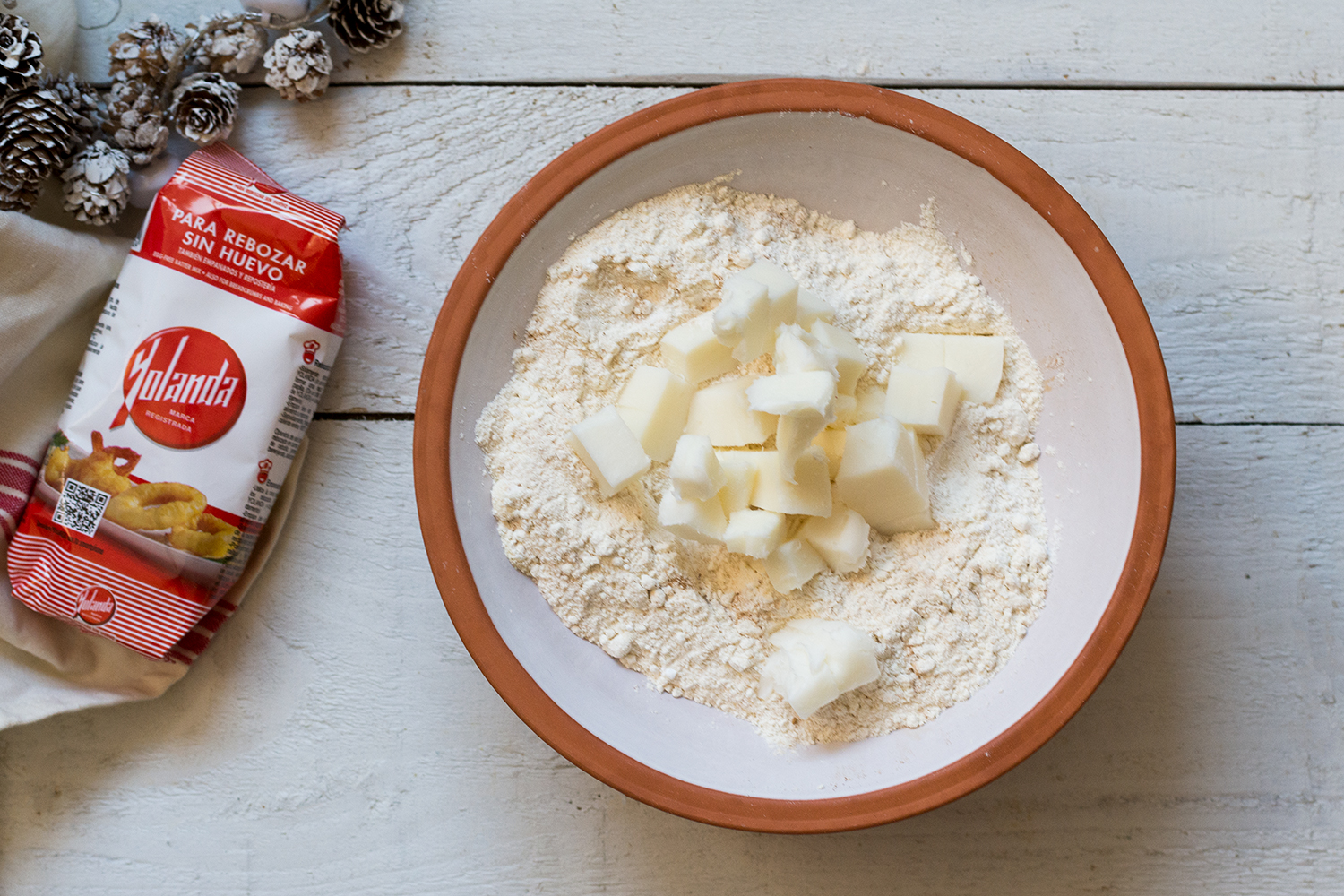 - En un cuenco grande, mezclamos la Harina Yolanda con la almendra en polvo, la canela y el azúcar glas.