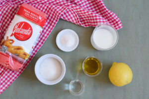 En un cuenco grande mezclamos los ingredientes líquidos (leche, aceite y anís) y la ralladura de limón.
