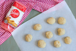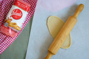 Vamos formando pequeñas bolas con la masa y estiramos con el rodillo hasta obtener una lámina muy fina.