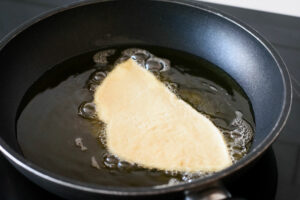 Cortamos si nos quedan muy grandes y freímos en abundante aceite caliente hasta que comiencen a dorarse.