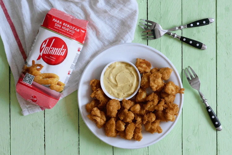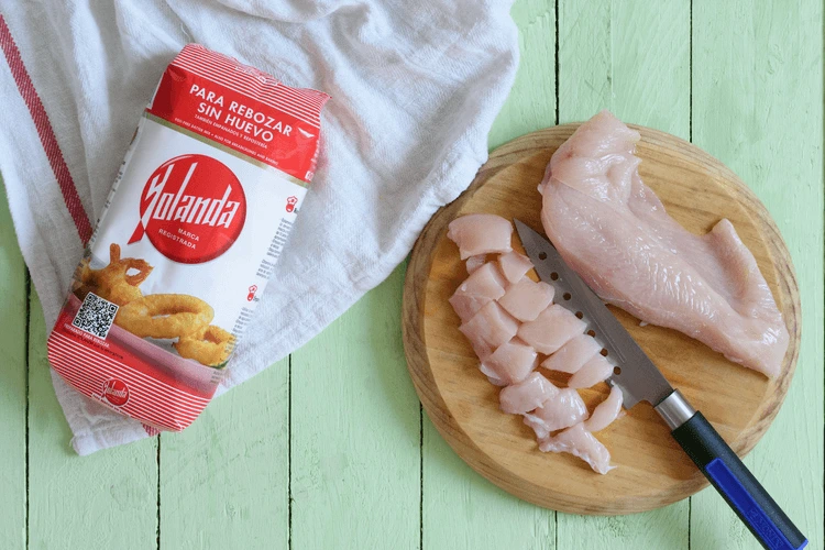 Pasamos los trozos de pollo por harina Yolanda y los freímos en abundante aceite caliente hasta que comiencen a dorarse.