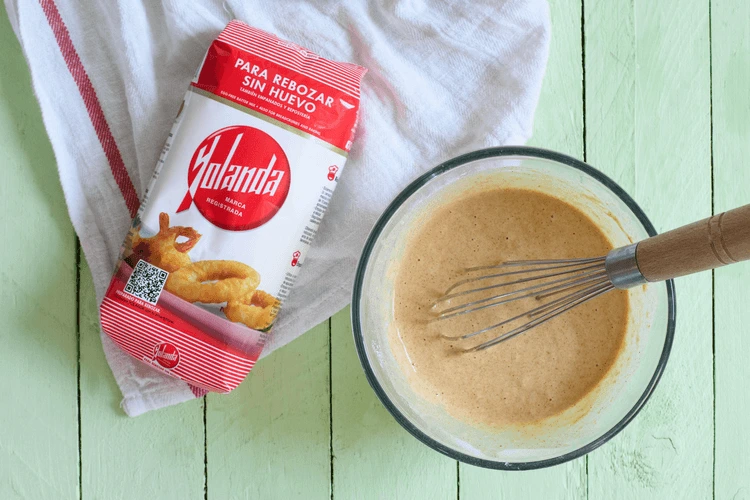 En un cuenco grande mezclamos bien la harina Yolanda con el agua, la leche, el ajo en polvo, el pimentón y salpimentamos al gusto.