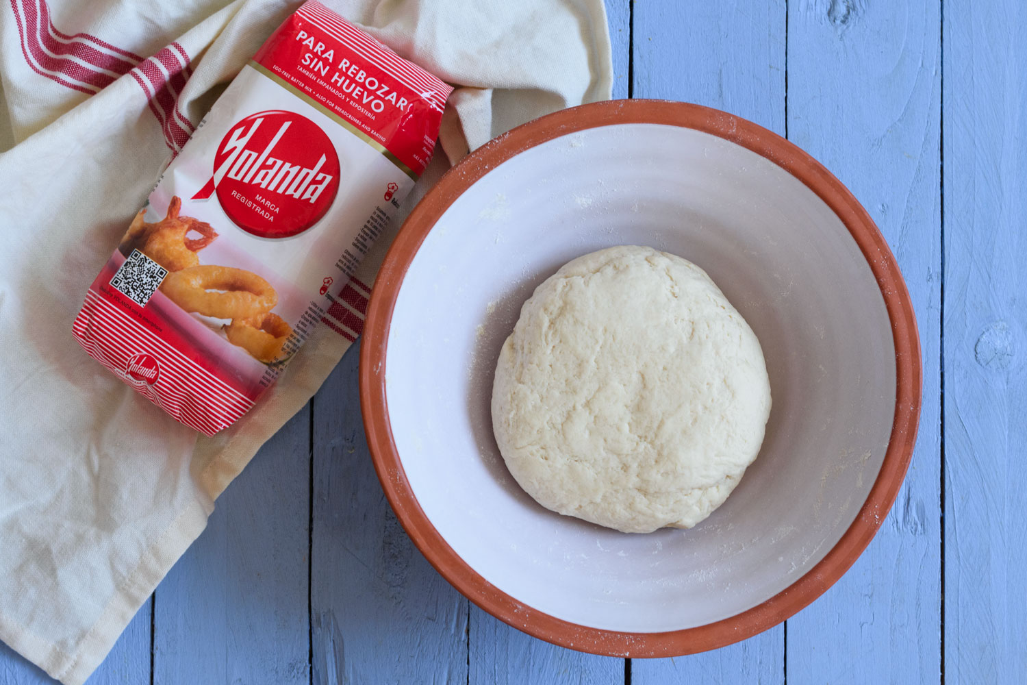 En un cuenco grande mezclamos todos los ingredientes, mezclamos y amasamos hasta obtener una masa elástica y homogénea. La dejamos levar durante 1 hora.