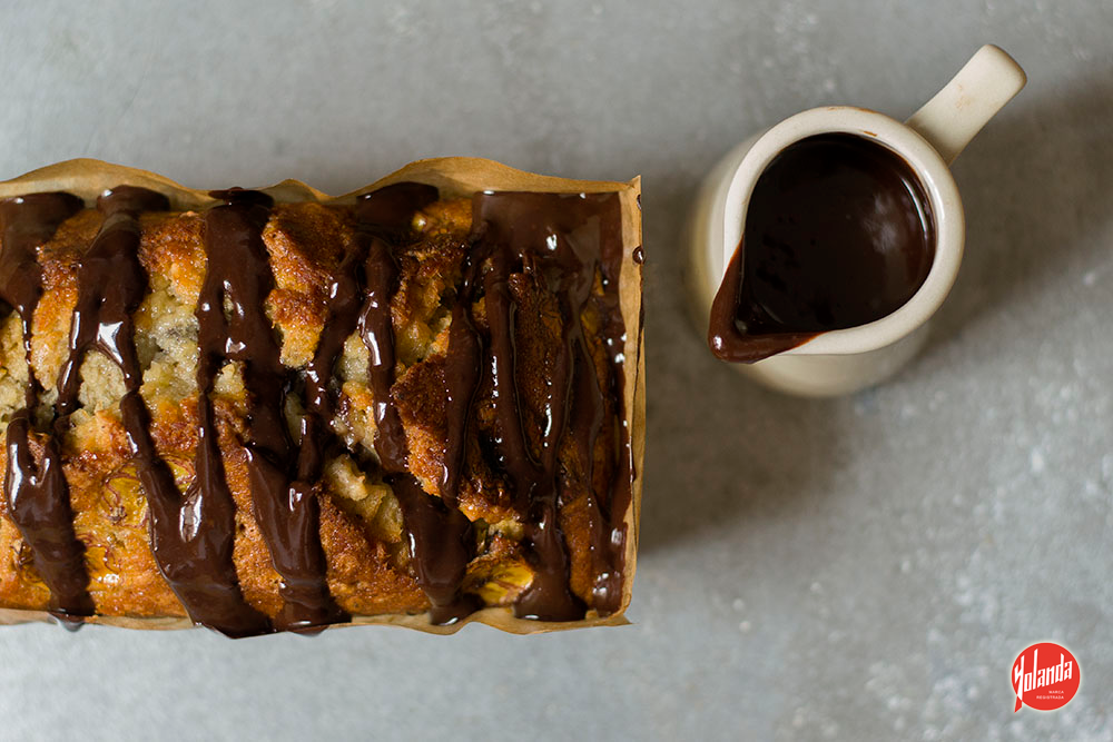 - Una vez enfriado el bizcocho, lo podemos decorar con un poco de chocolate fundido, le aportará un toque delicioso.