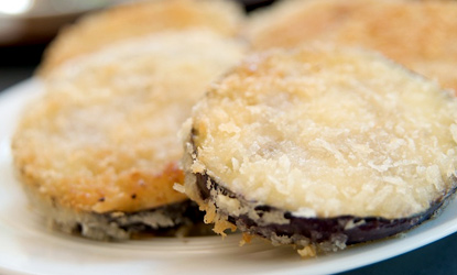 - Una vez doradas, sacar las berenjenas del aceite.