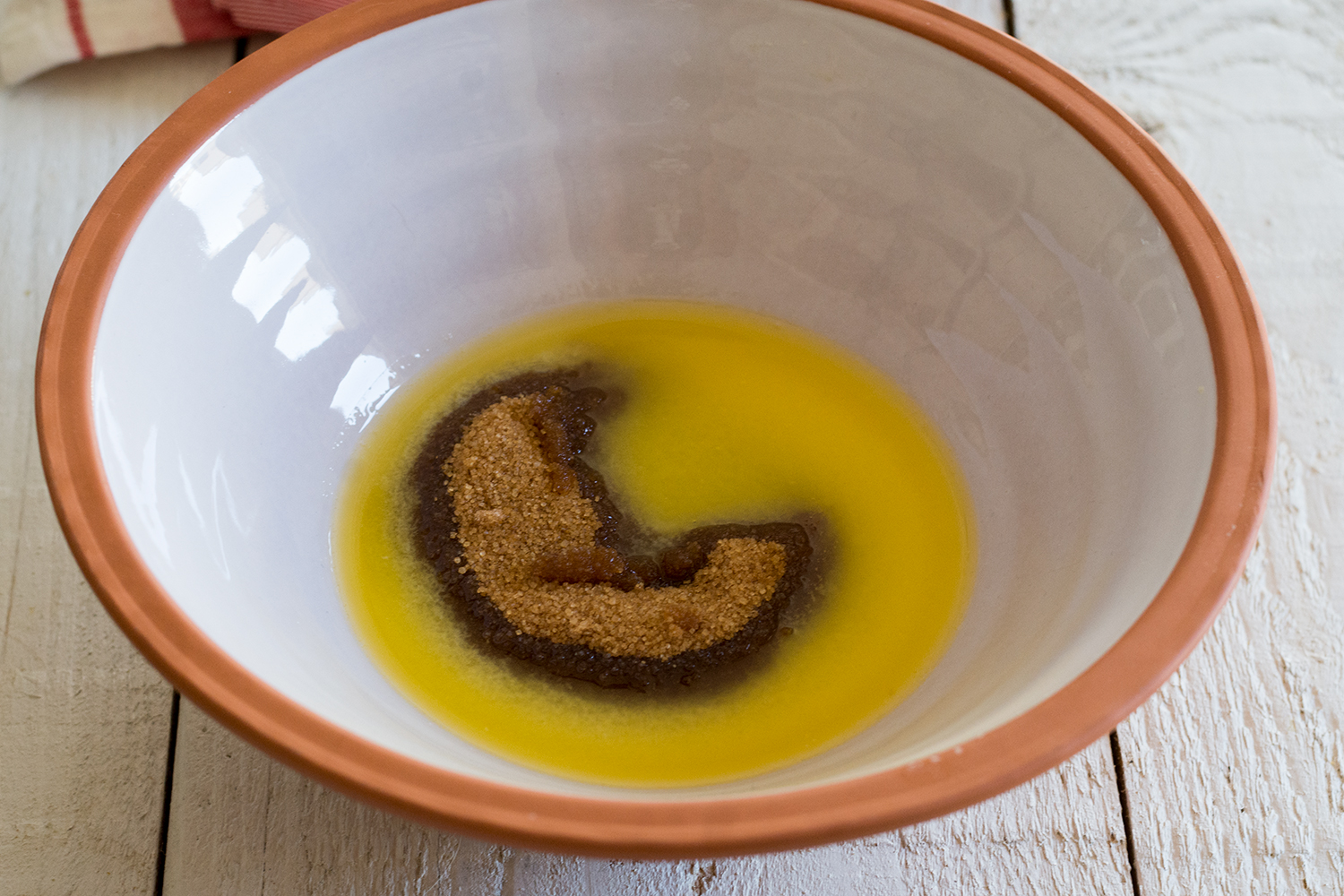 - Fundimos la mantequilla y la mezclamos con el azúcar moreno.