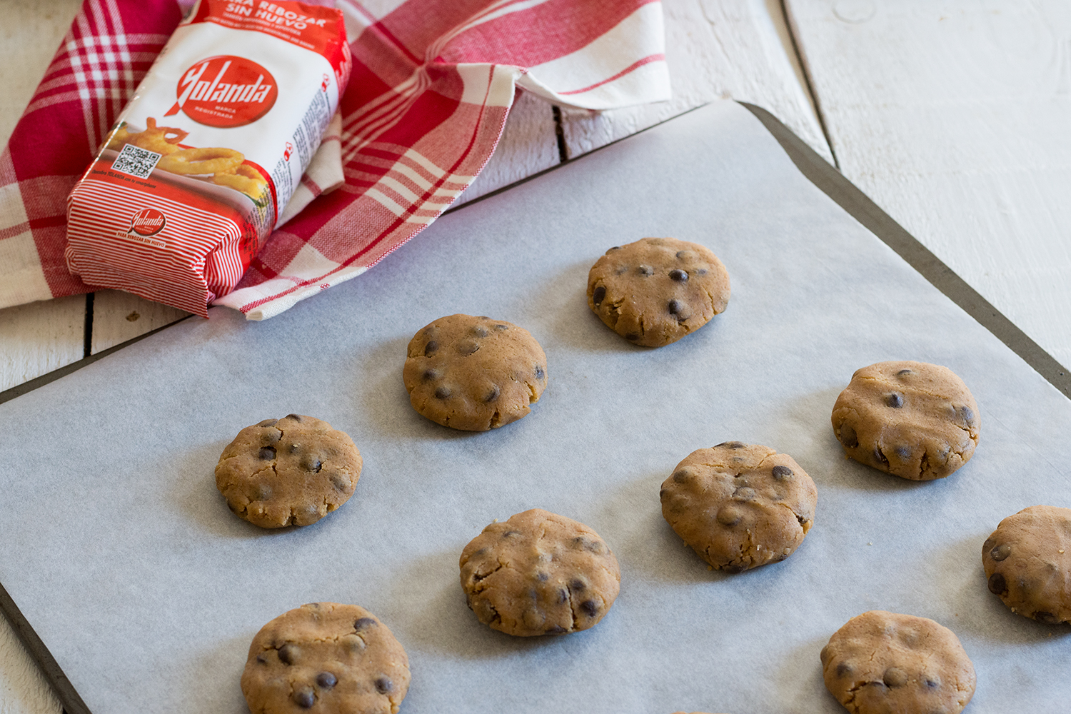 - Vamos tomando pequeñas porciones de masa y dando primero forma redondeada y, después, las chafamos un poquito dando forma de galleta.