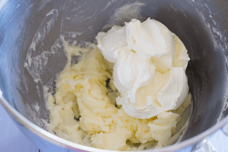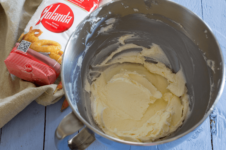- Para la crema o butter cream batimos la mantequilla con el azúcar glas hasta integrar. Añadimos el queso crema y batimos hasta obtener una crema homogénea.