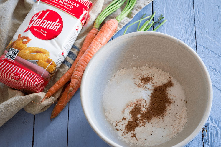 - En un cuenco grande mezclamos la Harina Yolanda con la levadura, el azúcar y la canela.