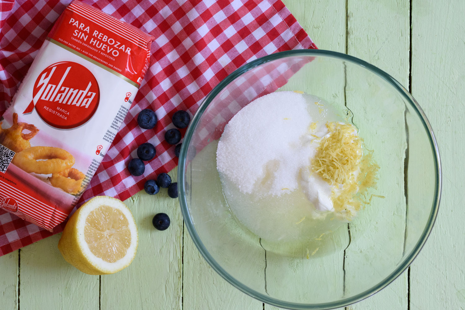 Añadimos los arándanos y mezclamos.
