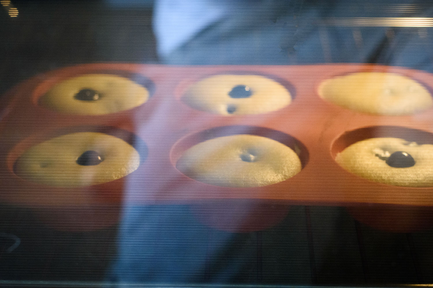 Rellenamos nuestros moldes de muffins o magdalenas ¾ de su capacidad y horneamos a 180ºC durante 20 minutos.