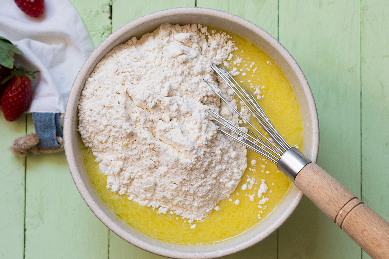 • Tamizamos la Harina Yolanda con la levadura y la añadimos a la mezcla anterior.