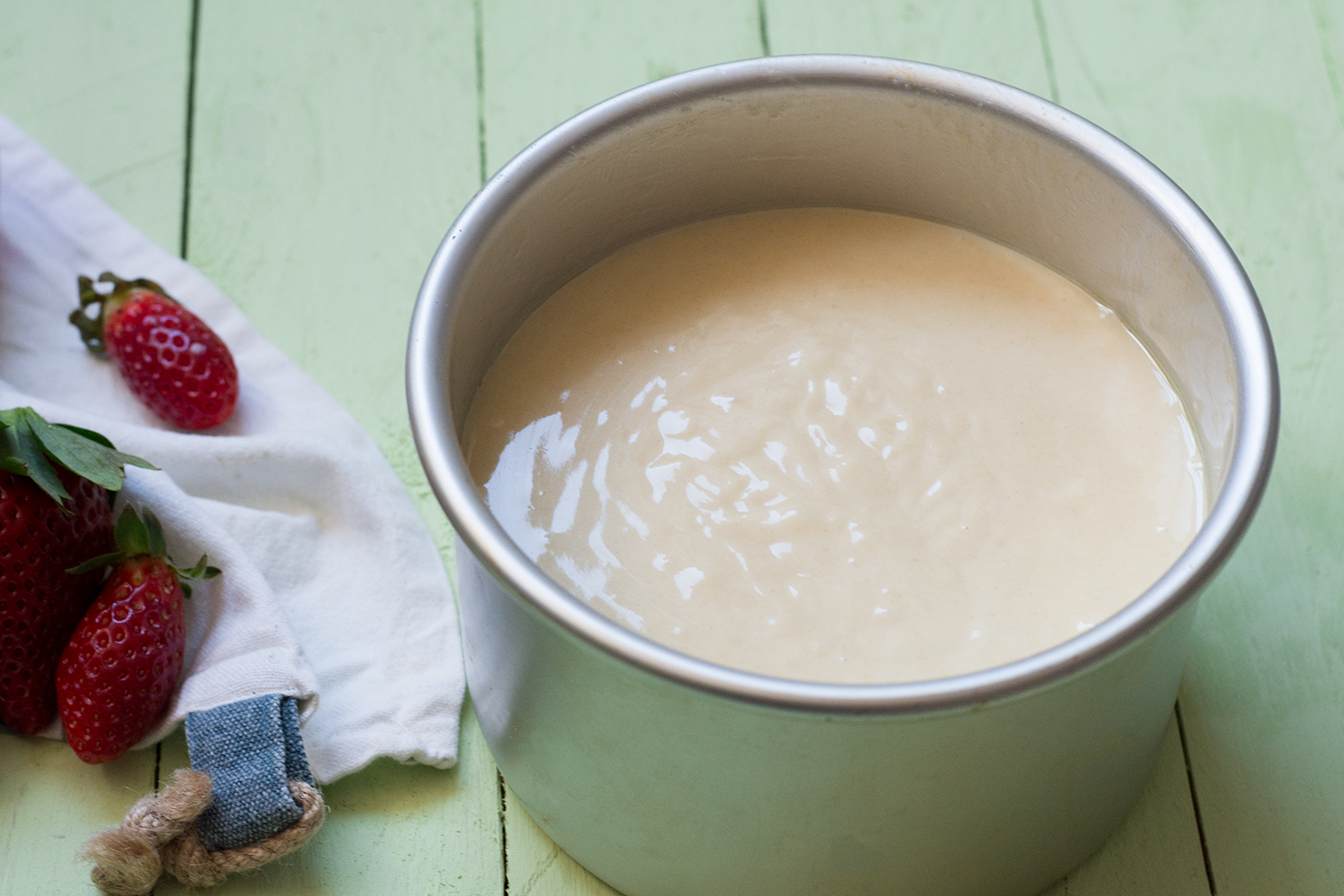 • Preparamos un molde de 20 cm de diámetro y vertemos la mezcla.