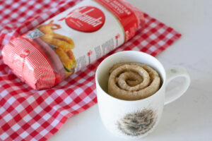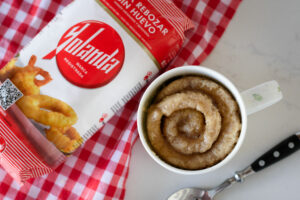 - Enrollamos y colocamos en una taza apta para microondas.