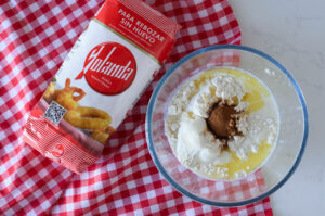 - Para terminar mezclamos dos cucharadas de azúcar glas con una cucharada de leche y lo cubrimos con la mezcla.