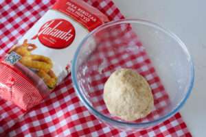 - En un cuenco grande mezclamos todos los ingredientes hasta formar una masa homogénea y elástica.