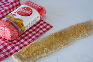 - La pintamos con un poco de mantequilla fundida y azúcar moreno.