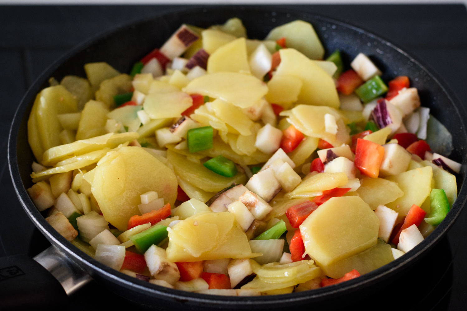 Añadimos las patatas y mezclamos bien.